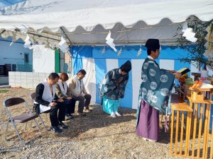 1月6日 大安吉日 徳島市中島田町 S様邸の 地鎮祭が執り行われました。 . 天候にも恵まれ 神事を滞りなく 無事に終了することができました。 地鎮祭での素敵な写真の一部をご紹介します! . 来月の上棟式に向けて 先週より基礎工事が順調に進んでいます。 これから心に残る家づくりを お施主様と一緒に精一杯やってまいります。