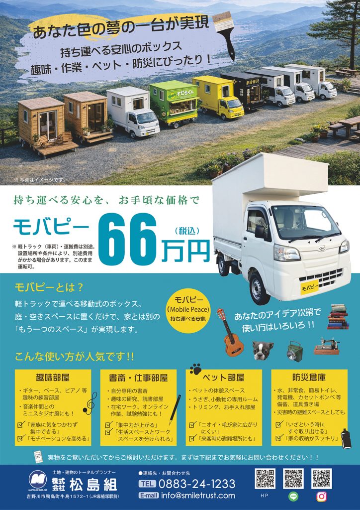 巷で密かに話題のモバピー。 モバピーとは・・・ 軽トラックで運べる移動式のボックス。 庭・空きスペースに置くだけで、 家とは別の「もう一つのスペース」が実現します。 ※モバピー(Mobile Peace)持ち運べる安心 . アイデア次第で使い方はいろいろ ✅趣味部屋 ✅書斎・仕事部屋 ✅ペット部屋 ✅防災倉庫 .